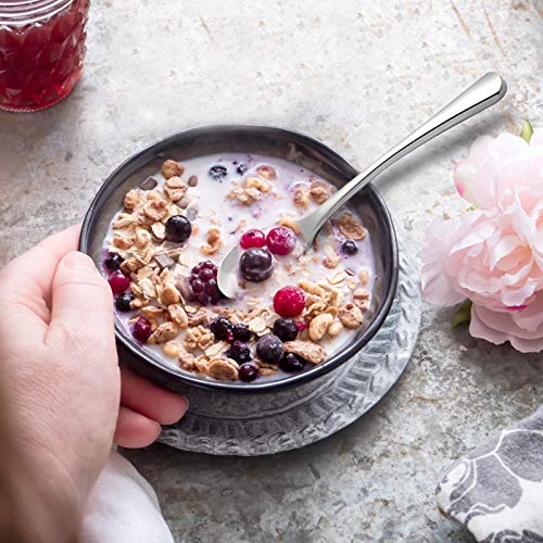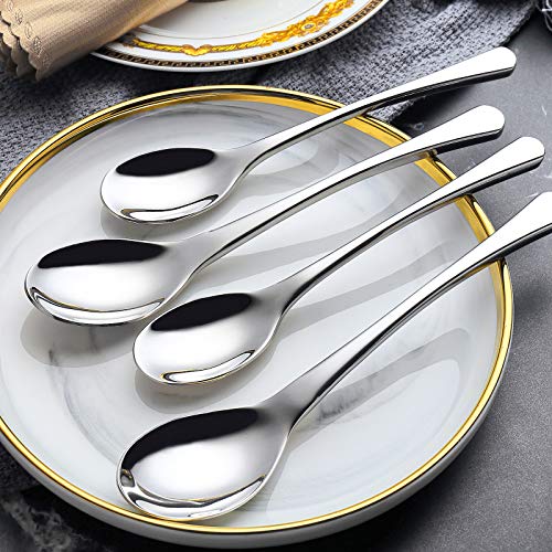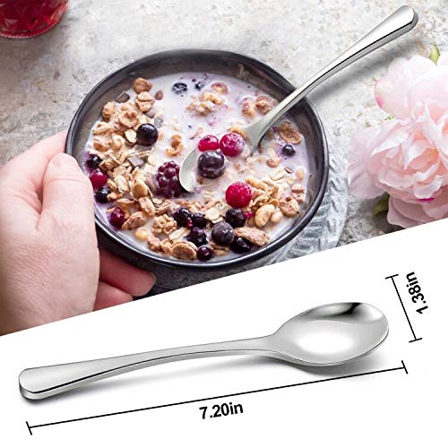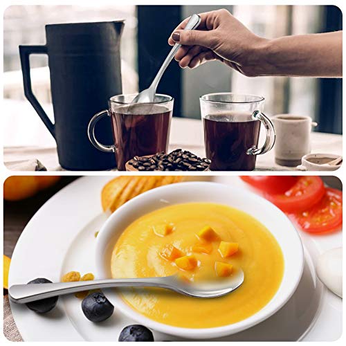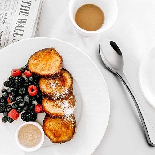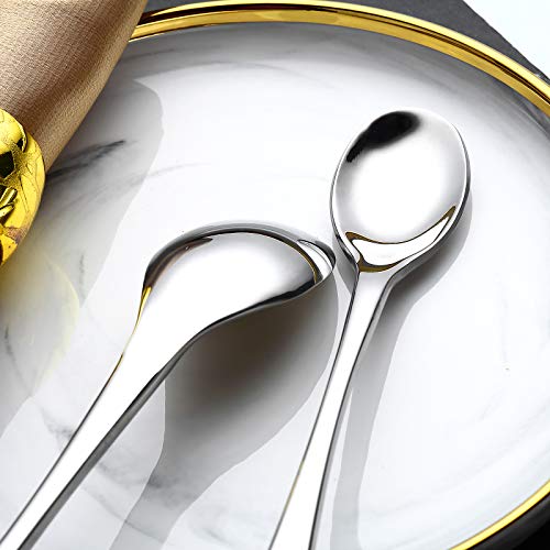 CONCISE DESIGN- Simple design allows for mix and match with your existing flatware. The smooth round spoon is safe to use without cutting your mouth. The handle with a tiny radian is more comfortable to grip. Perfect length to fit in drawer organizer.