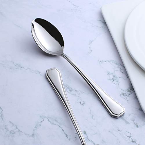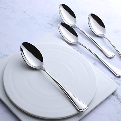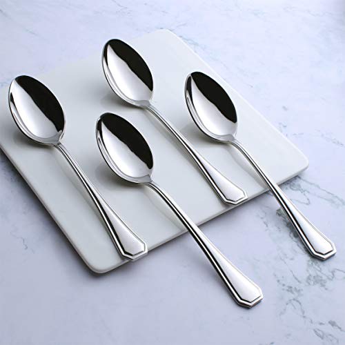 Easy to Clean and Dishwasher Safe – Smooth to touch handle, fascinating body curve, perfectly show, extra careful polishing of all the edges and more that reveal both artistic and safety for the dinner spoon. Even regularly as these are our everyday silverware set and they have not chipped or rubbed or rusted after going into the dishwasher. This stainless steel dinner spoon will not warp, bend or break saving you money on costly replacement