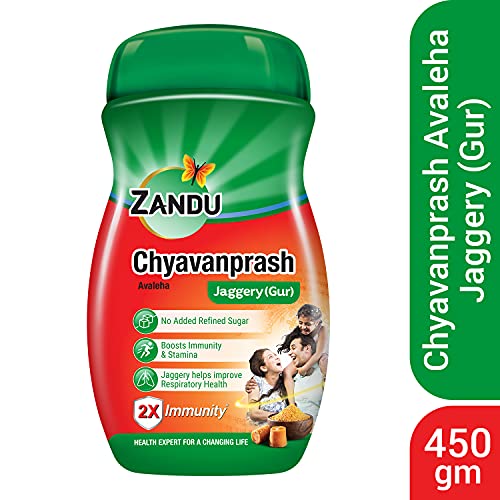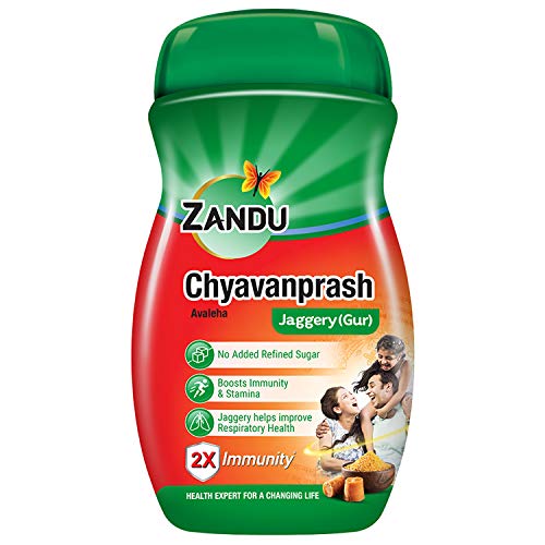 Zandu Chyavanprash Avaleha, is an authentic Ayurvedic Formulation made as per the Ayurvedic Literature of the Ayurveda Saar Sangraha. Now, Zandu Chyavanprash, comes in an all new Avatar, which contains no added refined sugar and Natural Jaggery. It is made with 39 precious Ayurvedic Herbs and is Scientifically proven for 2X Immunity. Jaggery, contains several added heath benefits and is rich with minerals and micro-nutrients. It is also proven to help improve respiratory health. It can be consumed universally across all age groups and a spoon a day helps improve your Immunity and keeps you energetic throughout the day. Made with the 100 years of Ayurvedic Wisdom of Zandu, regular consumption of Zandu Chyavanprash keeps your family healthy so that they can stay protected from illnesses and be ready to face tomorrows Challenges effectively.